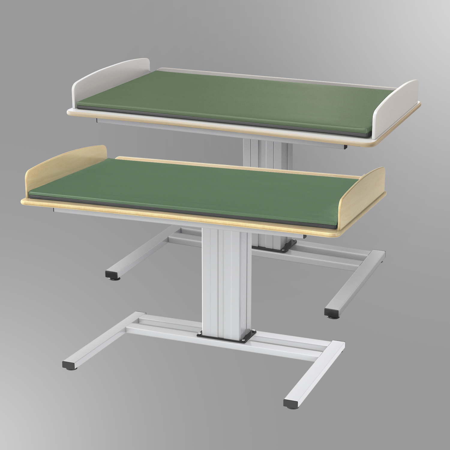 Elin är ett elektriskt höj- och sänkbart skötbord där du kan ställa in arbetshöjden mellan 60 och 110 cm. För att undvika tunga lyft upp på skötbordet kan du komplettera det med skötbordstrappan Klättra. Tvättdelen kan placeras till höger eller vänster och finns som standard i bredderna 100, 120 och 140 cm.